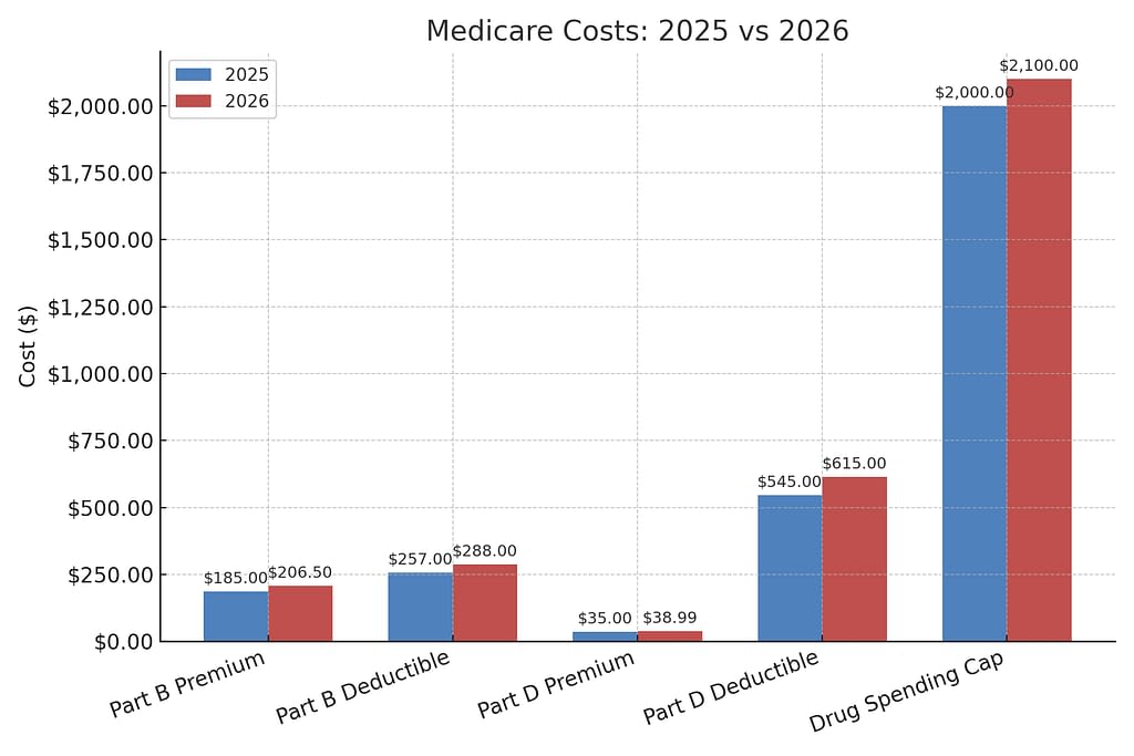 On top of that, in 2026, Medicare costs will rise in several areas. Premiums, deductibles, and even prescription drug costs are expected to increase. Planning ahead can save you from unwanted surprises and help you protect your retirement savings.